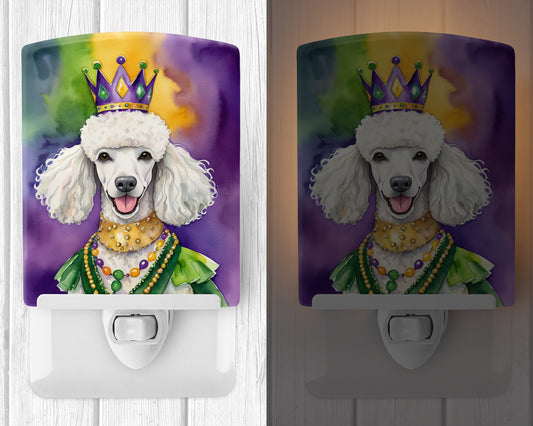 White Poodle King of Mardi Gras Ceramic Night Light
