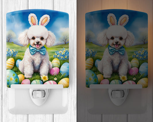 White Poodle Easter Egg Hunt Ceramic Night Light