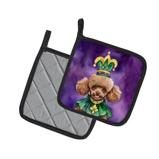 Chocolate Poodle King of Mardi Gras Pair of Pot Holders