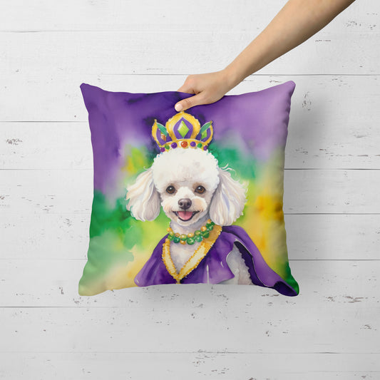 White Poodle King of Mardi Gras Throw Pillow