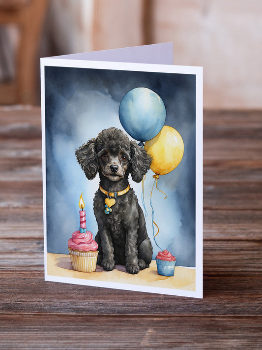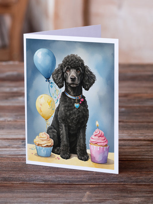 Black Standard Poodle Happy Birthday Greeting Cards Pack of 8