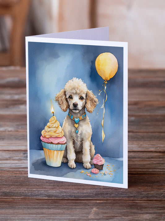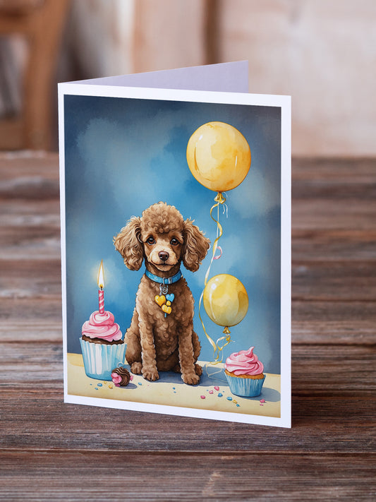 Chocolate Standard Poodle Happy Birthday Greeting Cards Pack of 8
