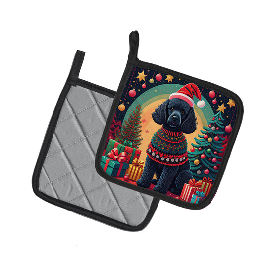 Black Poodle Christmas Pair of Pot Holders