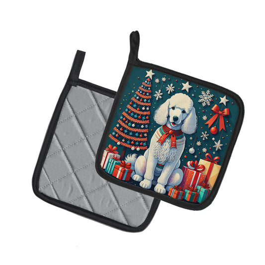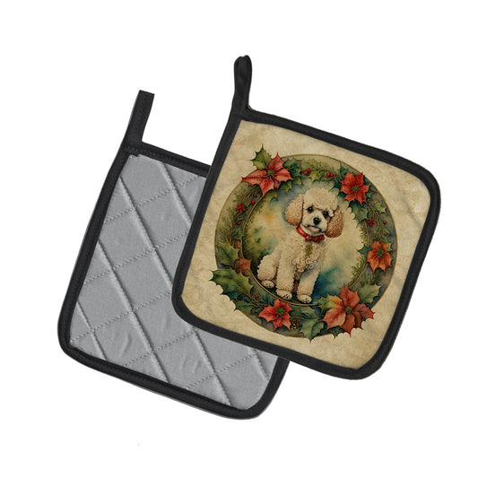 White Toy Poodle Christmas Pair of Pot Holders