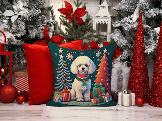 White Toy Poodle Christmas Throw Pillow