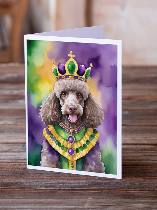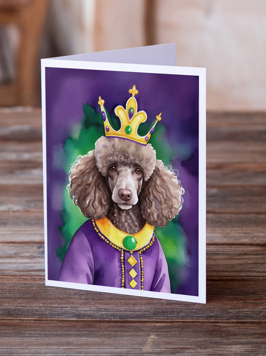 Chocolate Poodle King of Mardi Gras Greeting Cards Pack of 8