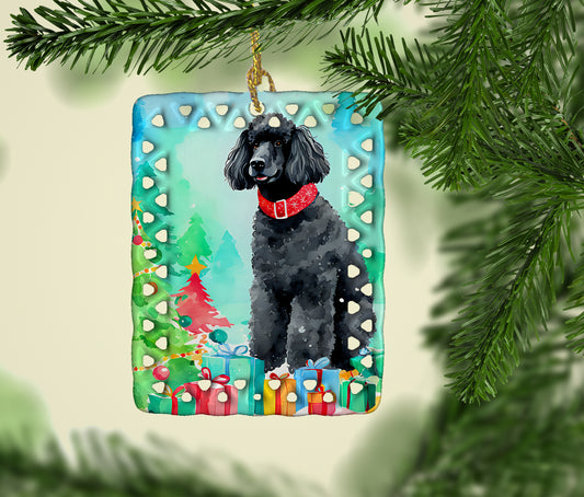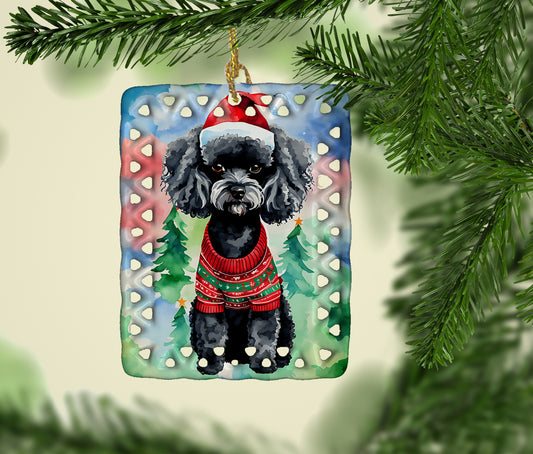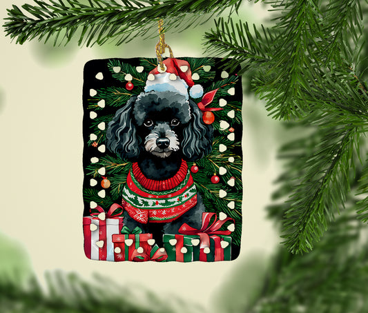Black Standard Poodle Christmas Reindeer Garden Flag