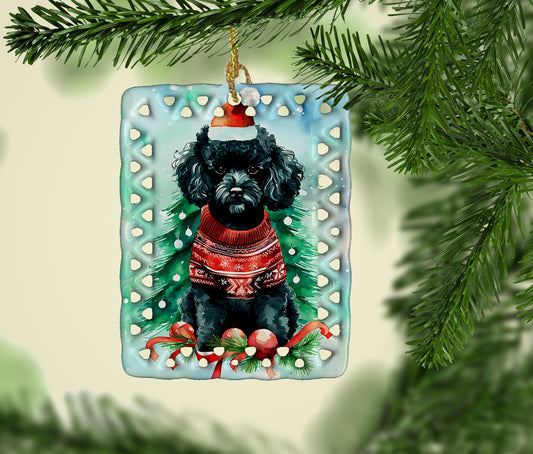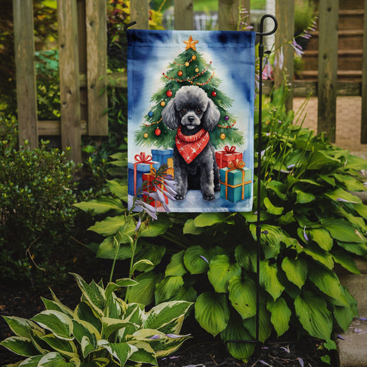 Black Toy Poodle Christmas Reindeer Garden Flag