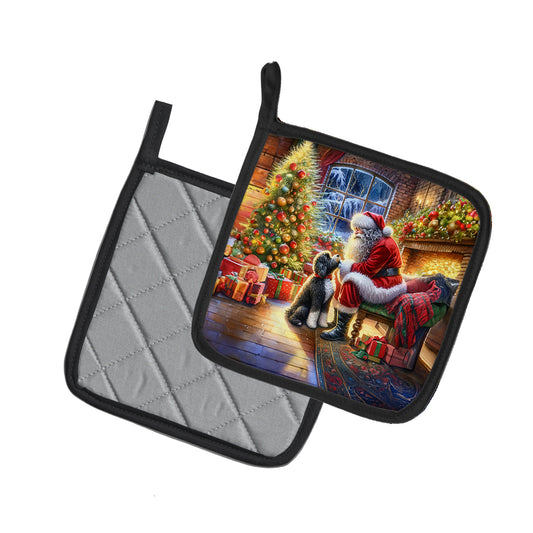 Portuguese Water Dog and Santa Claus Pair of Pot Holders