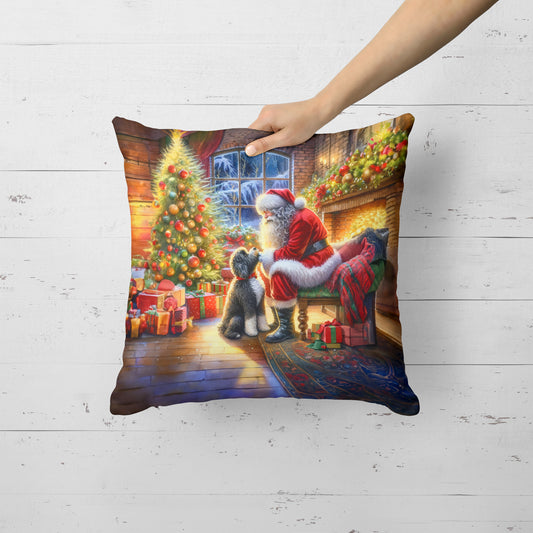 Portuguese Water Dog and Santa Claus Throw Pillow