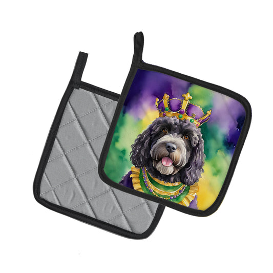 Portuguese Water Dog King of Mardi Gras Pair of Pot Holders