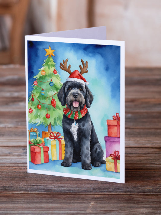 Portuguese Water Dog Christmas Reindeer Greeting Cards Pack of 8