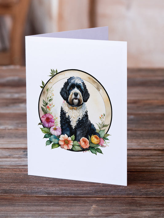 Portuguese Water Dog and Flowers Greeting Cards and Envelopes Pack of 8