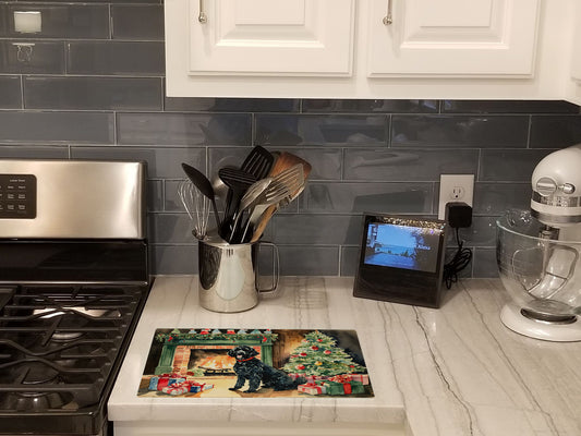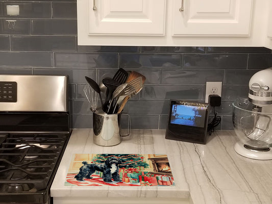 Portuguese Water Dog Cozy Christmas Glass Cutting Board