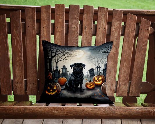 Black Pug Spooky Halloween Throw Pillow