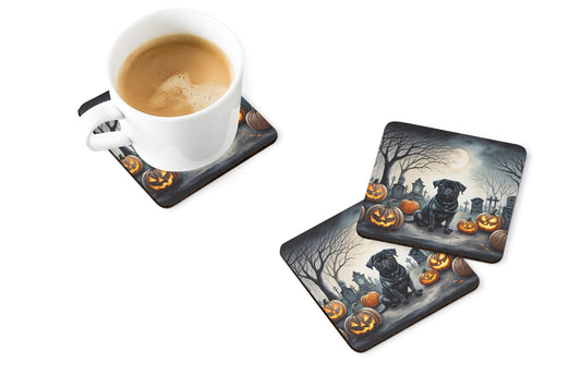 Black Pug Spooky Halloween Foam Coasters
