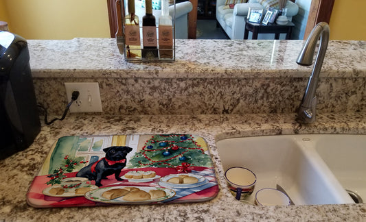 Pug Christmas Cookies Dish Drying Mat