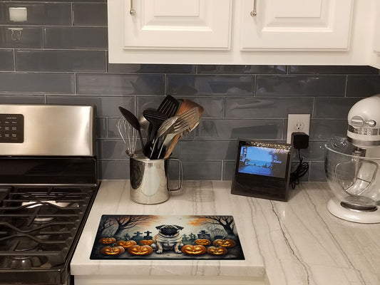 Black Pug Spooky Halloween Glass Cutting Board