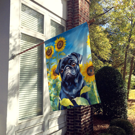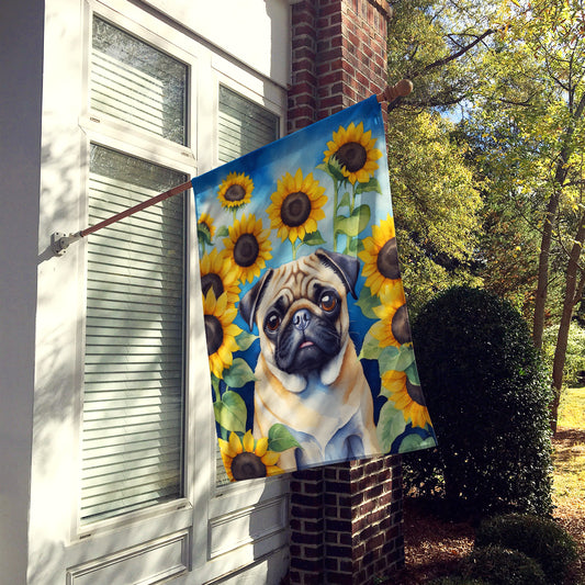 Pug in Sunflowers House Flag