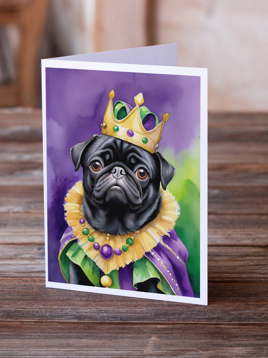 Black Pug King of Mardi Gras Greeting Cards Pack of 8