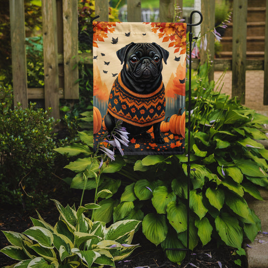 Black Pug Fall Garden Flag