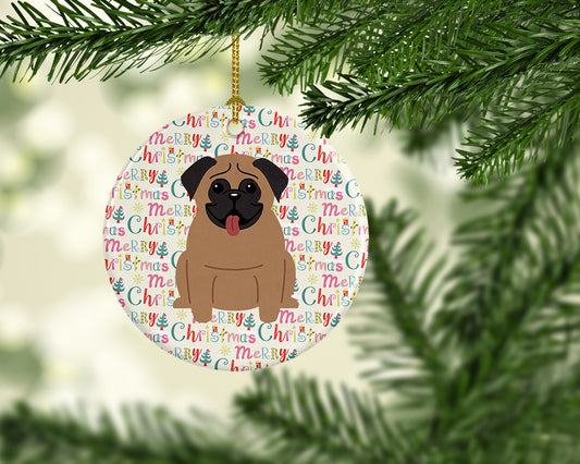 Merry Christmas Pug Brown Ceramic Ornament