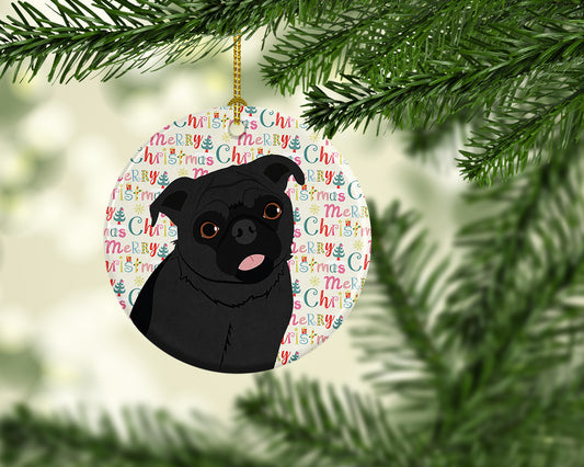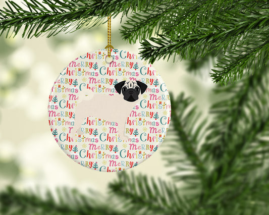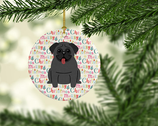 Merry Christmas Pug Black Ceramic Ornament
