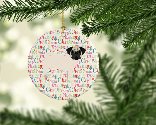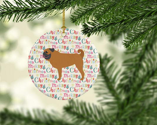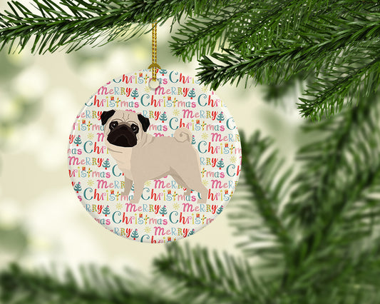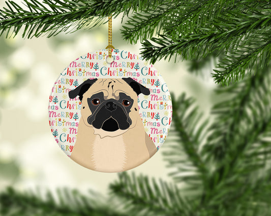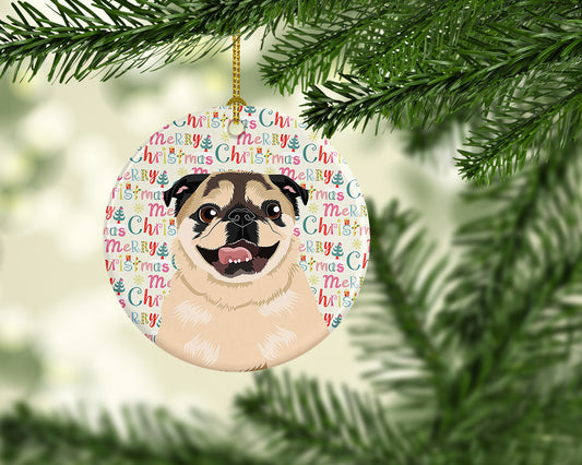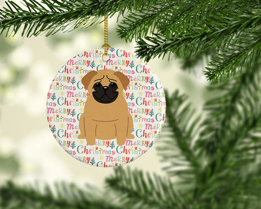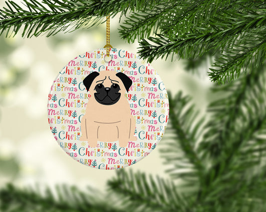 Merry Christmas Pug Fawn Ceramic Ornament