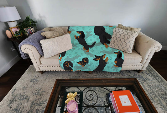 Longhaired Black Tan Dachshund Quilted Blanket 50x60