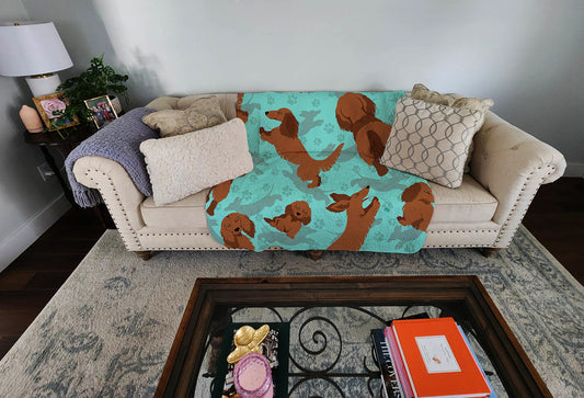Longhaired Red Dachshund Quilted Blanket 50x60