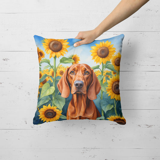 Redbone Coonhound in Sunflowers Throw Pillow