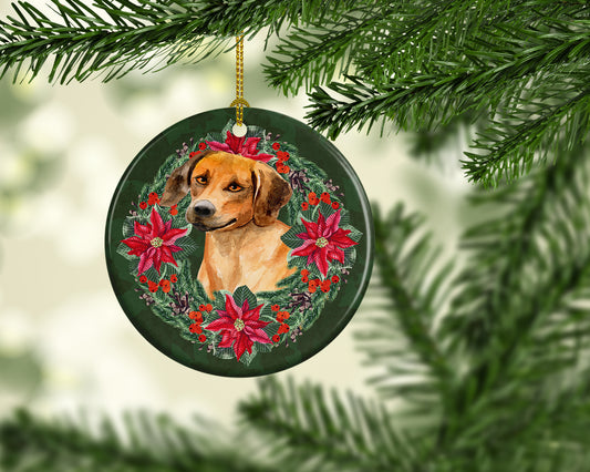 Rhodesian Ridgeback Poinsetta Wreath Ceramic Ornament