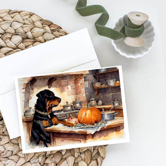 Rottweiler Fall Kitchen Pumpkins Greeting Cards and Envelopes Pack of 8