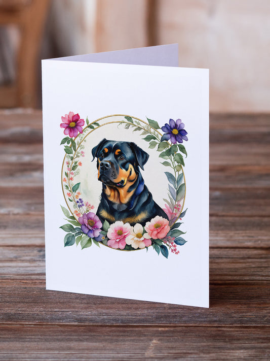 Rottweiler and Flowers Greeting Cards and Envelopes Pack of 8