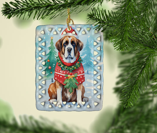 Saint Bernard Christmas Porcelain Ornament