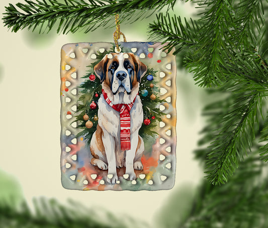 Saint Bernard Holiday Christmas Porcelain Ornament