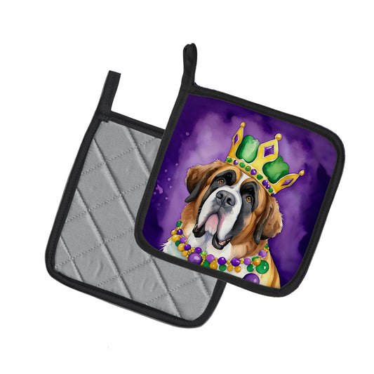 Saint Bernard King of Mardi Gras Pair of Pot Holders