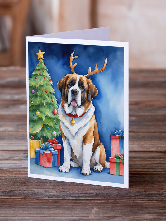 Saint Bernard Christmas Reindeer Greeting Cards Pack of 8