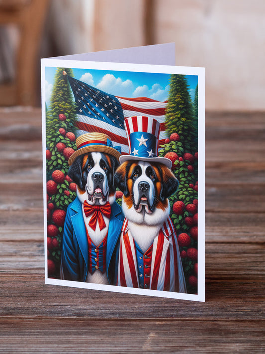 Saint Bernard Patriotic American Greeting Cards Pack of 8