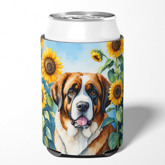 Saint Bernard in Sunflowers Can or Bottle Hugger