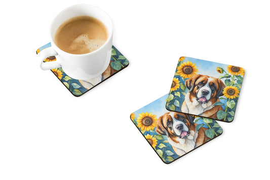 Saint Bernard in Sunflowers Pair of Pot Holders