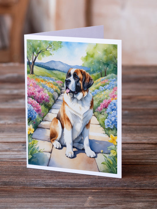 Saint Bernard Spring Path Greeting Cards Pack of 8