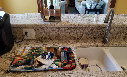 Saint Bernard Cozy Christmas Dish Drying Mat