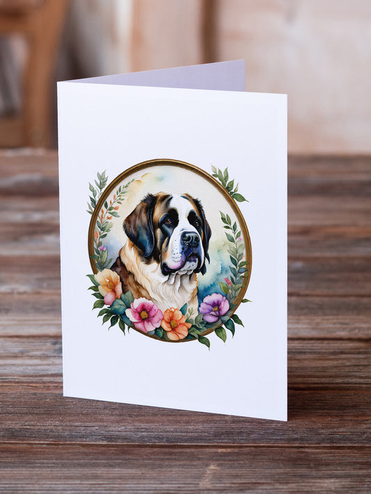 Saint Bernard and Flowers Greeting Cards and Envelopes Pack of 8