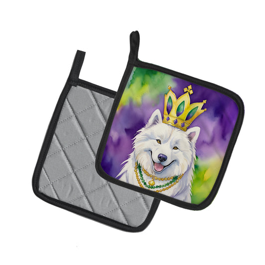 Samoyed King of Mardi Gras Pair of Pot Holders