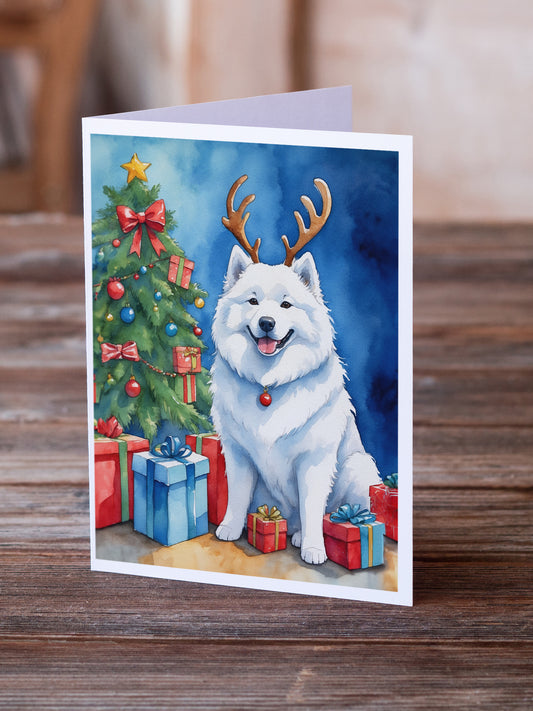 Samoyed Christmas Reindeer Greeting Cards Pack of 8