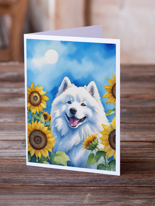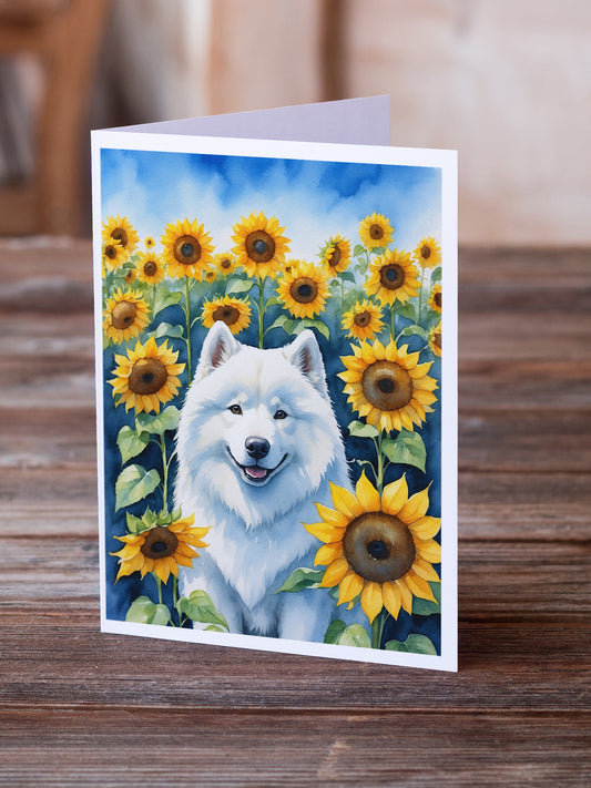 Samoyed in Sunflowers Greeting Cards Pack of 8