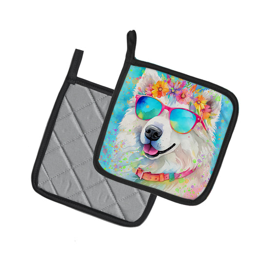 Samoyed Hippie Dawg Pair of Pot Holders