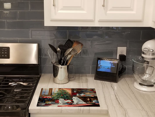 Samoyed Cozy Christmas Glass Cutting Board