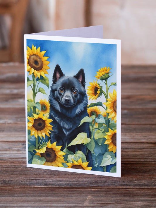 Schipperke in Sunflowers Greeting Cards Pack of 8